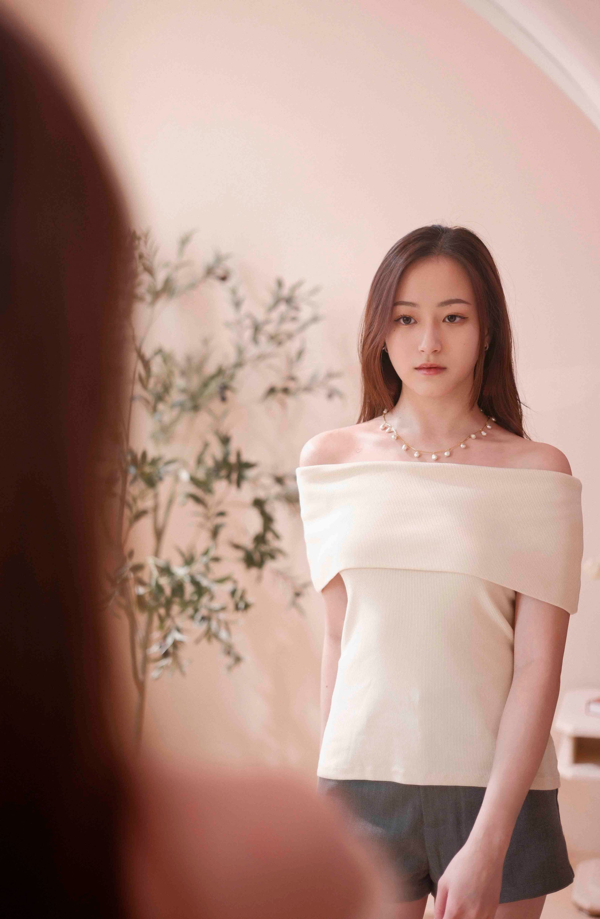 柔軟的面料結合開肩剪裁,為簡約的短袖上衣增添一抹俏皮的氣息。