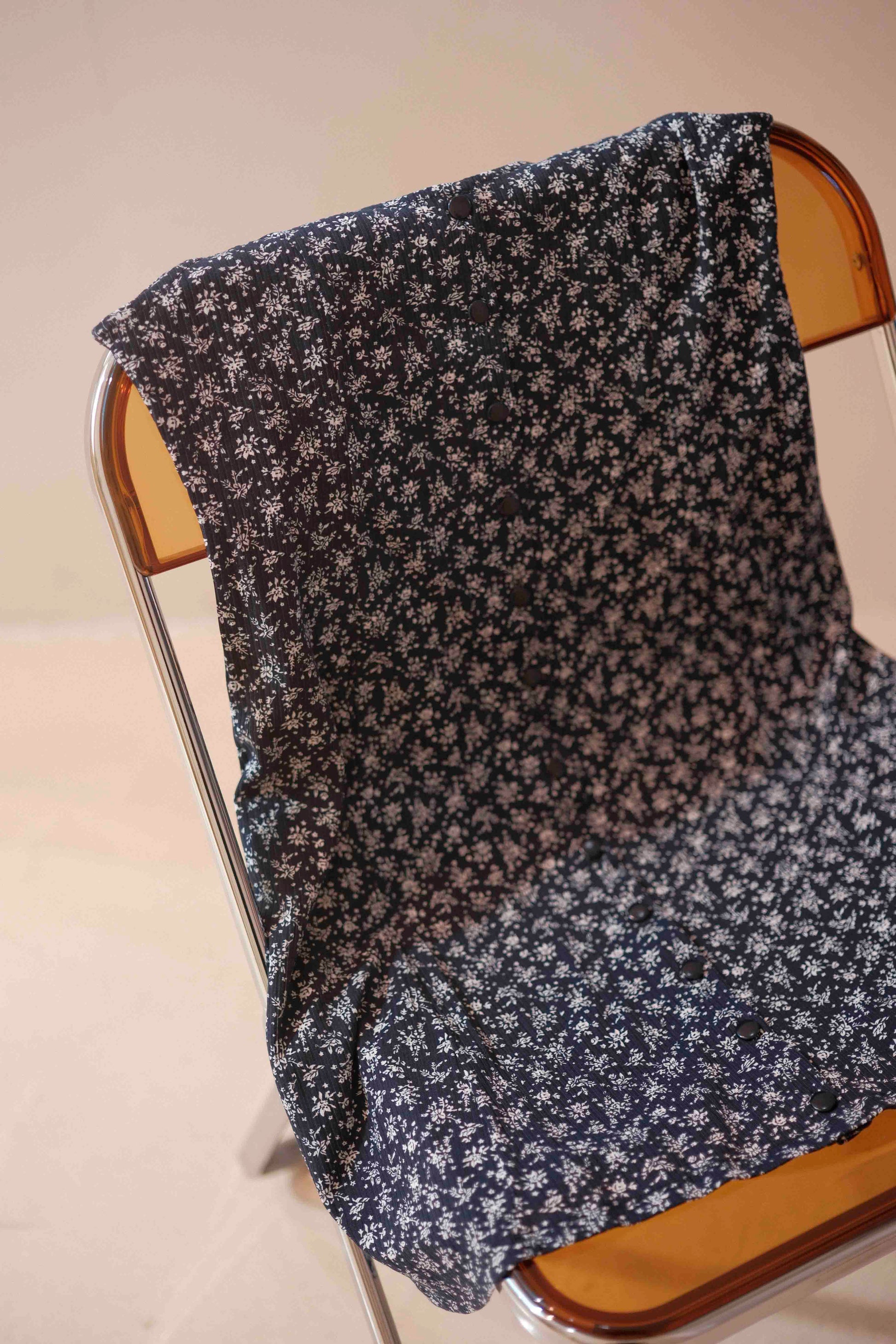 圓領設計搭配前排釦門襟 搭配藍白色系